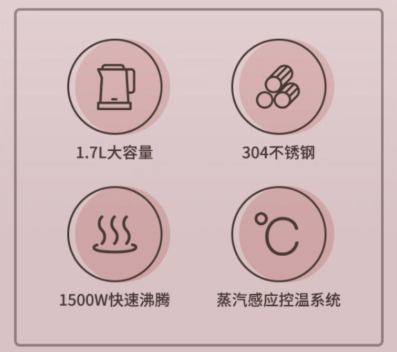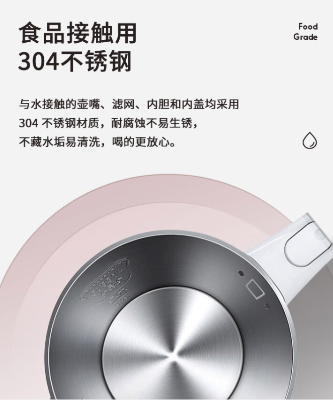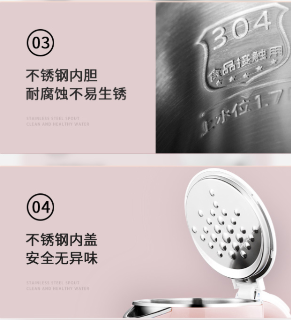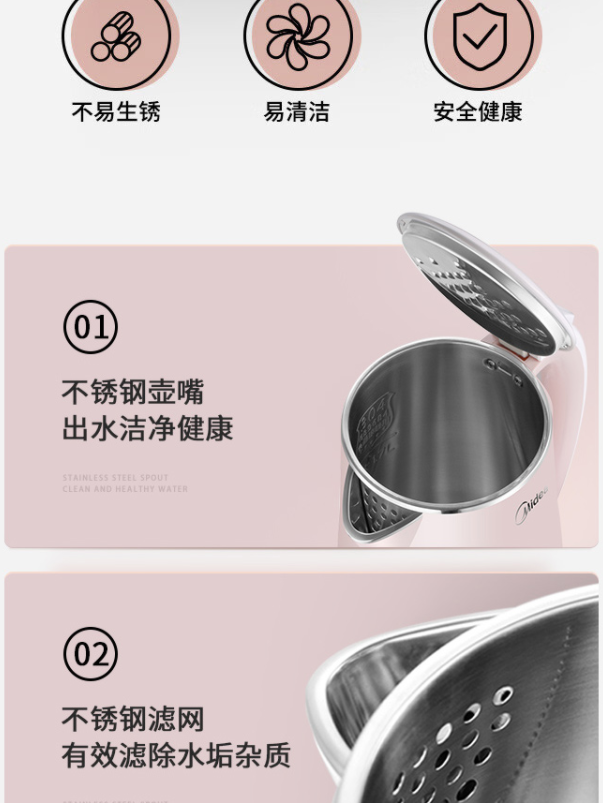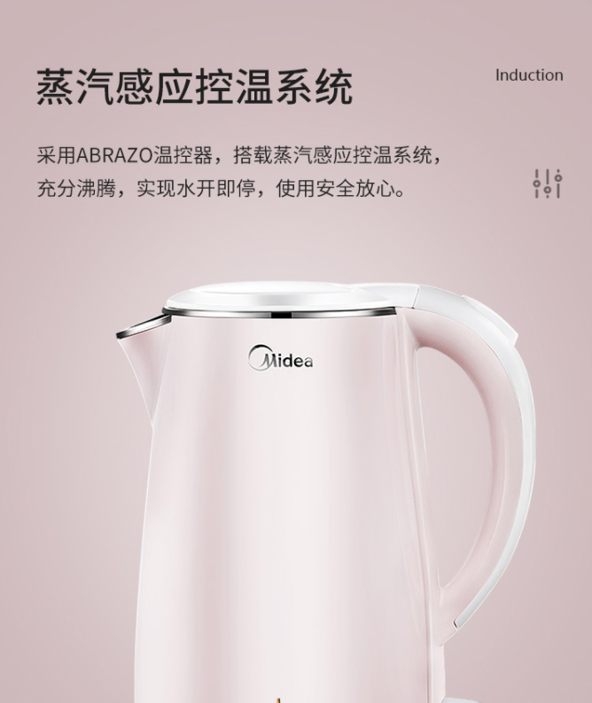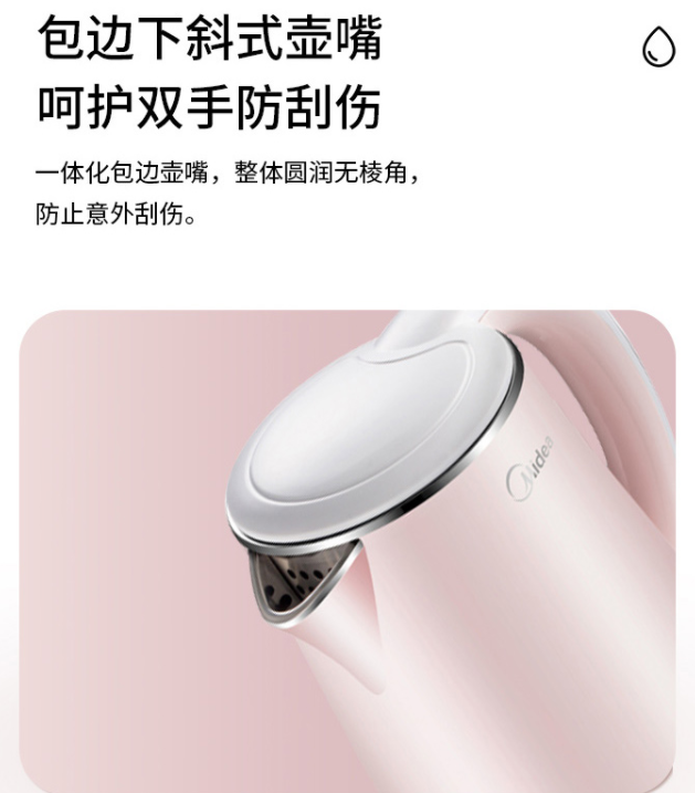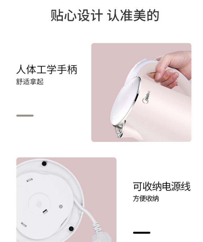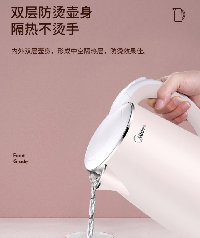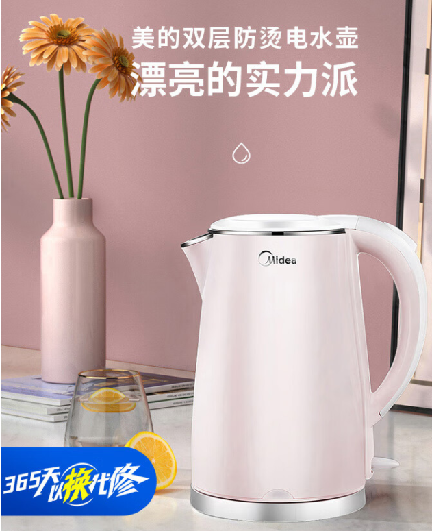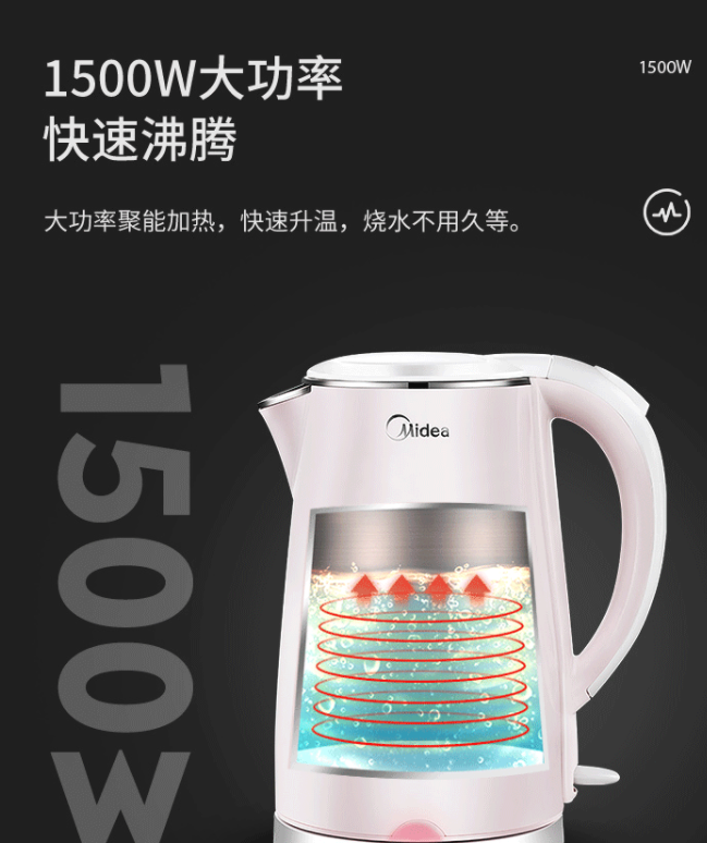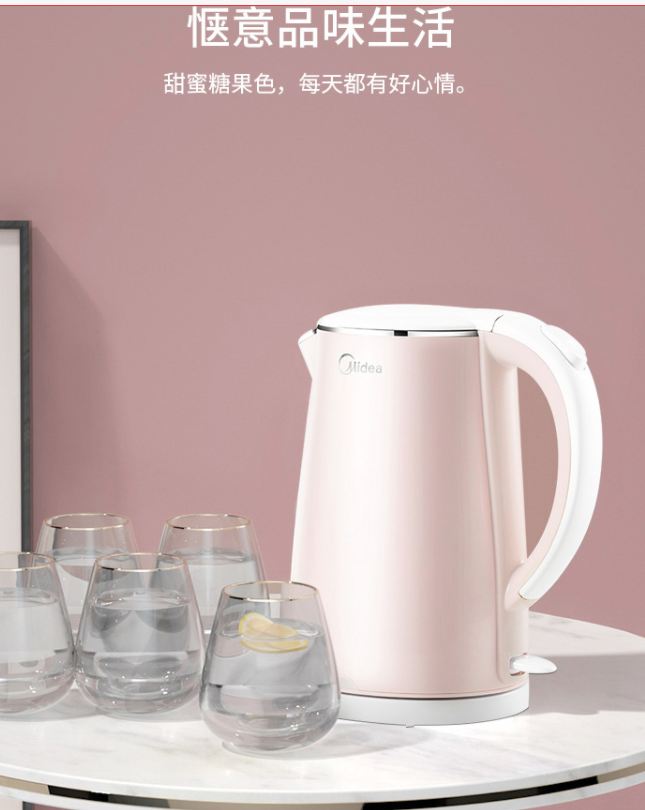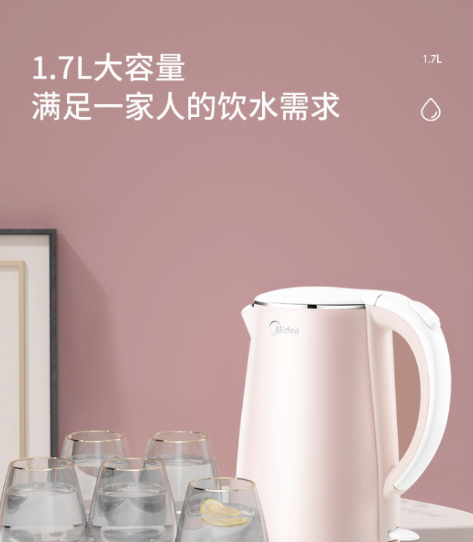 美的(Midea)電水壺熱水壺電熱水壺304不銹鋼1.7L容量暖水壺燒水壺凈甜家用大容量開水壺智能自動斷電1705b