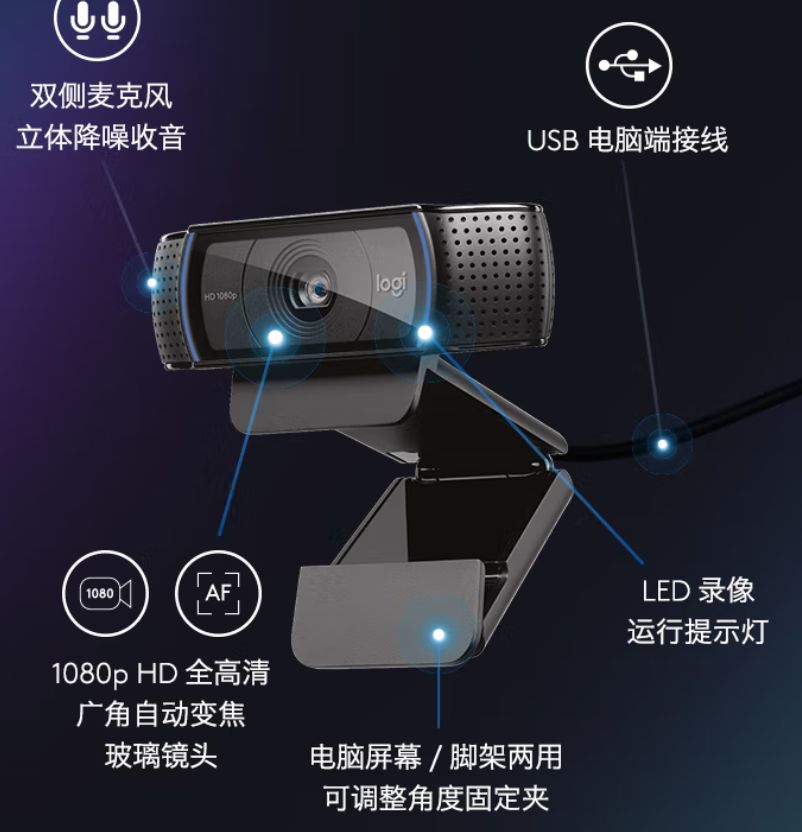 當前位置: 首頁 > 攝影器材及配件 > 照相機及配件 > 鏡頭及器材 > 羅技C920e\C920PRO\C920攝像頭+1.7米支架
